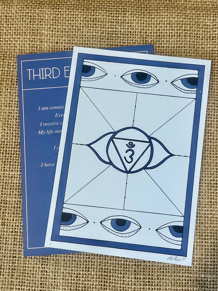 I select a card, it’s The Raven, the messenger, the one who holds wisdom and knowledge. Release the old, a time of renewal. - I close my eyes, an image of a beach comes to mind, I know which one –and so the journey through the portal to the third eye begins.